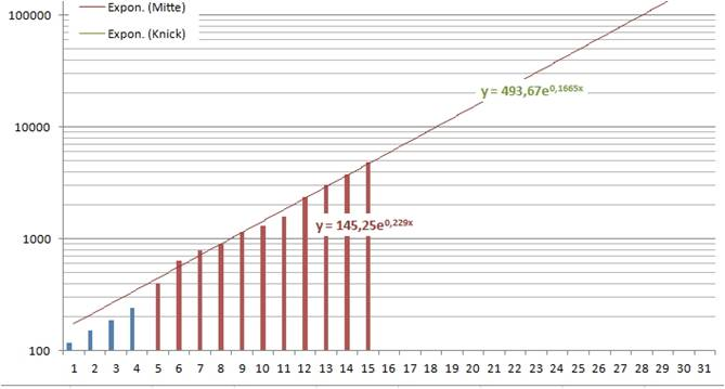 Ist nicht bekannt, dass man exponentiell ansteigende Daten logarithmisch darstellen muss?