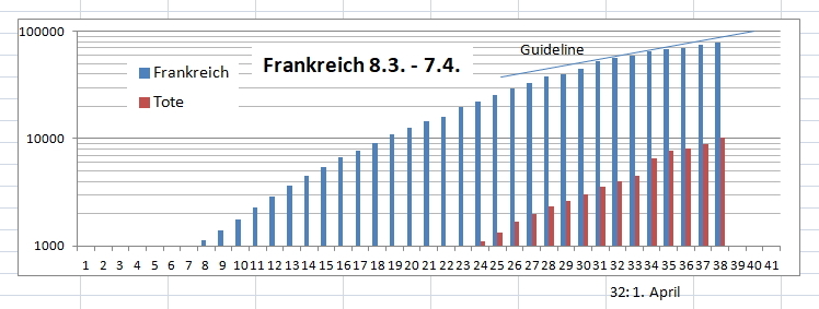 natürlich auch exponentiell, mit bekannten Wochenoszillationen.