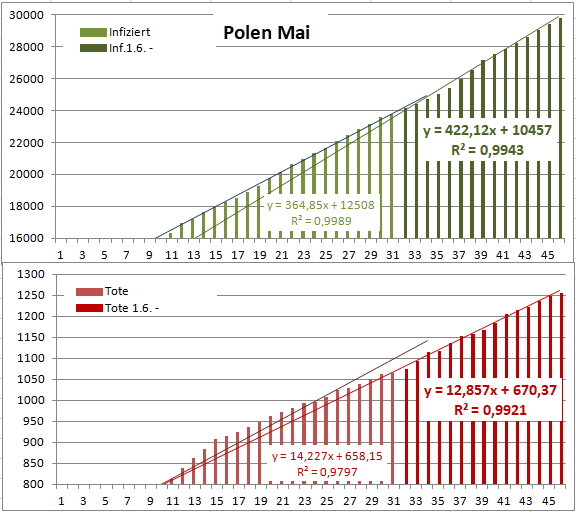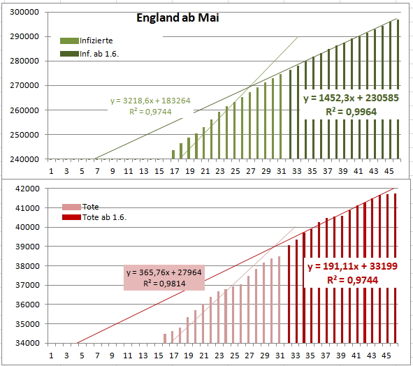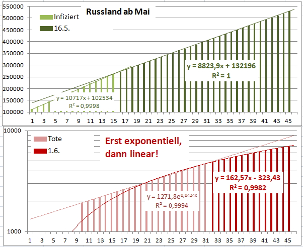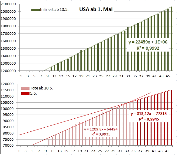 Neuinfektionen 2 Wochen konstant linear! Sterberate exponentiell!