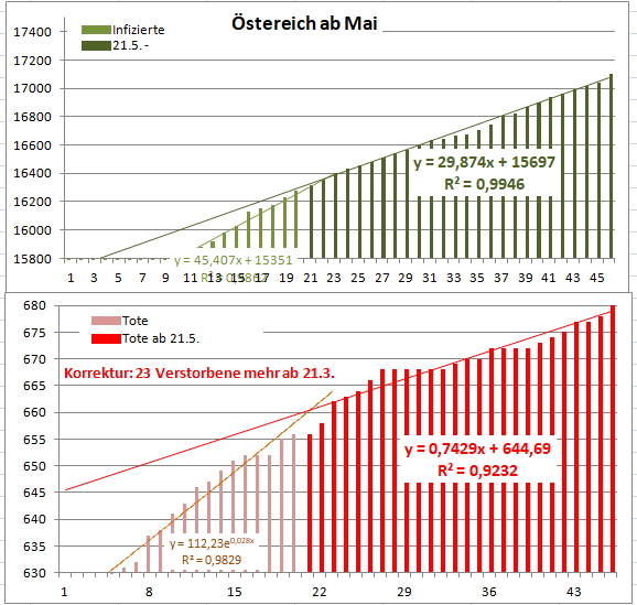Neuer Fit ab 21.5. etwas besser. Die täglichen Neuinfektionen steigen