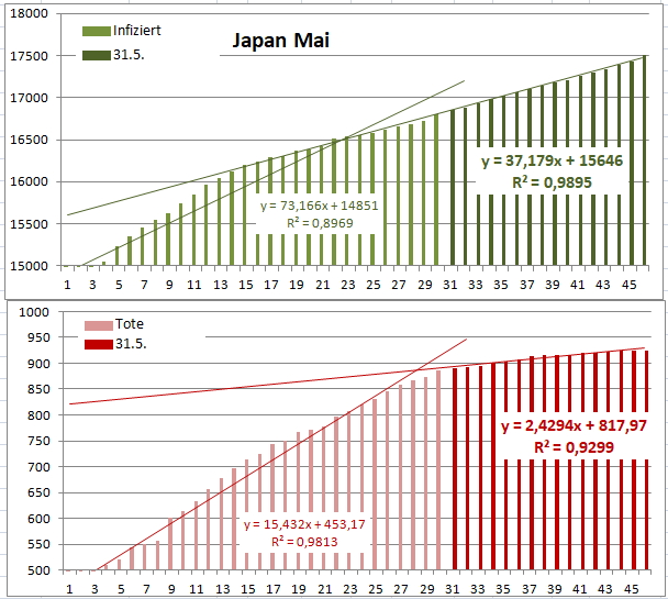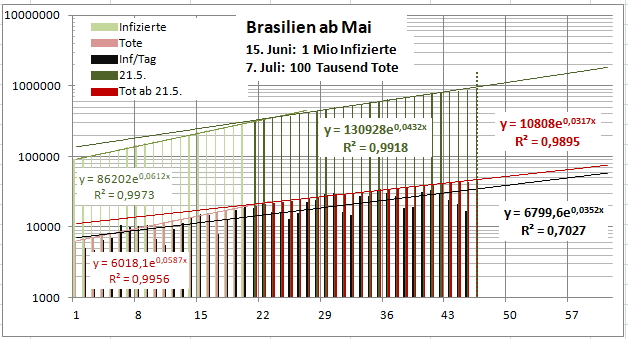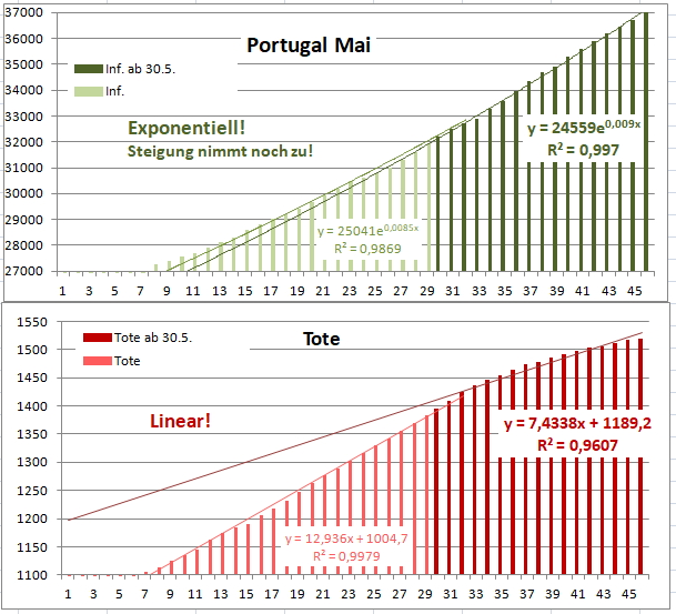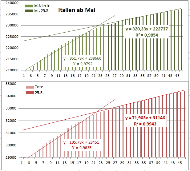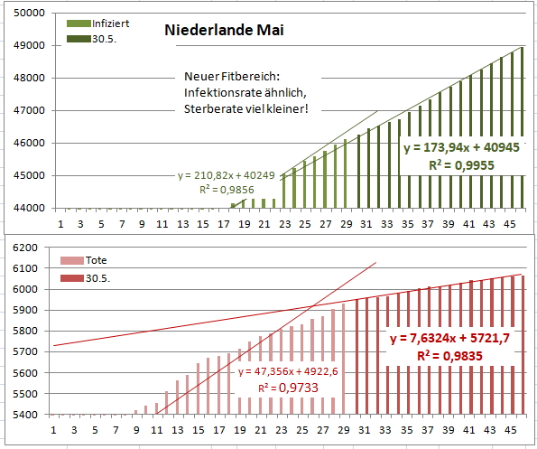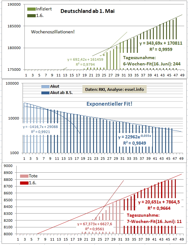Neuer Fit ab 1. Juni, sehr geringer Anstieg, aber die täglichen Infektionen nehmen kaum ab!