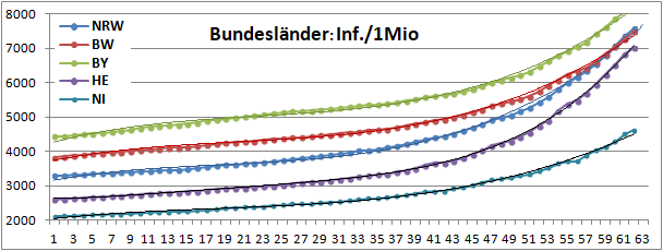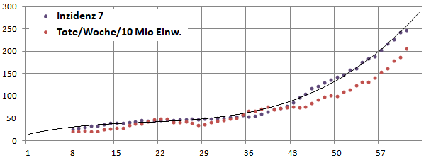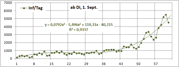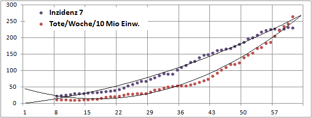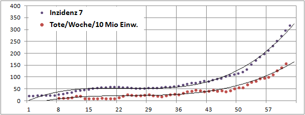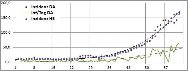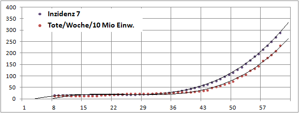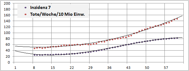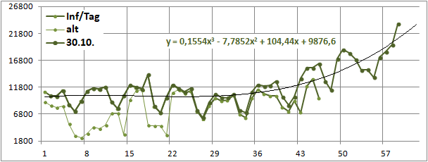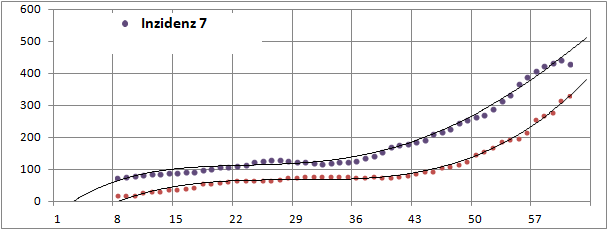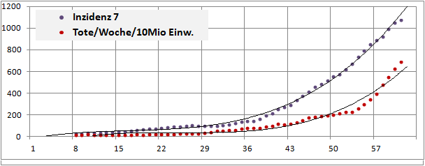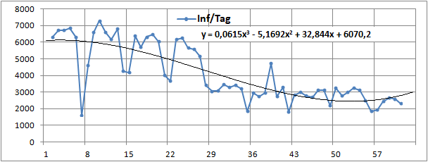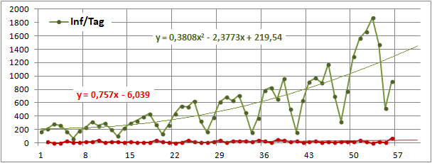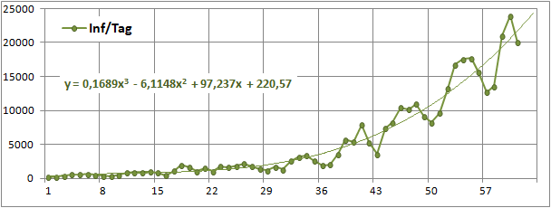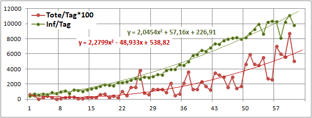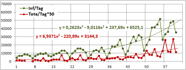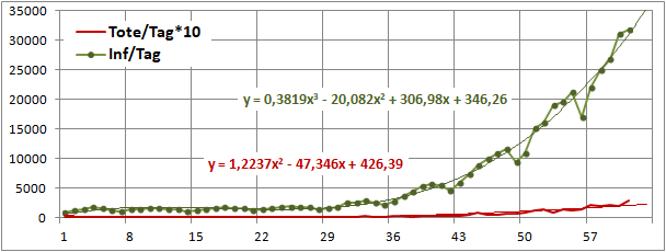 - | Akut | Inf/Tag | Fitkurve | Tote/Tag | Fitkurve | Inzidenz |