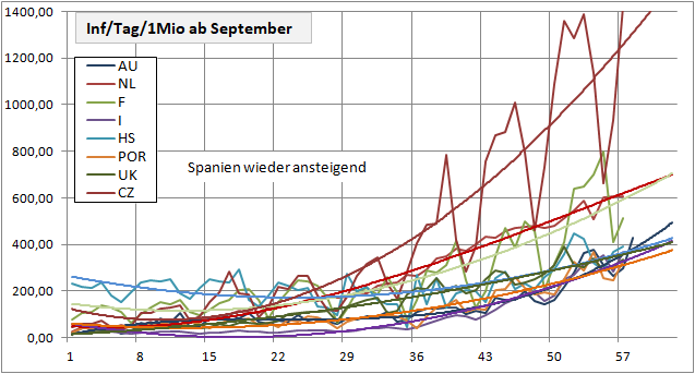 Zeitliche Entwicklung: Belgien überholt Tschechien, Frankreich Holland,