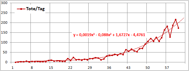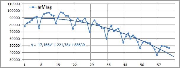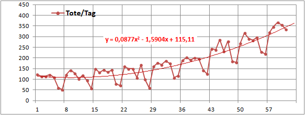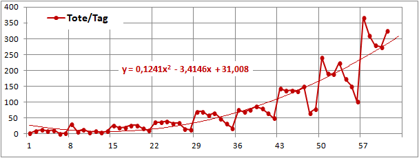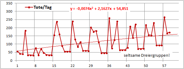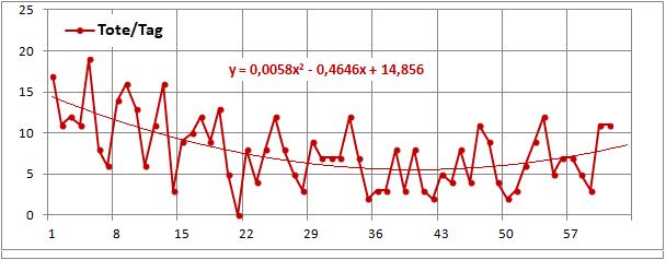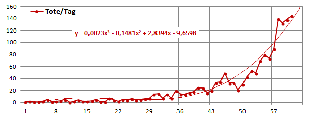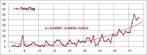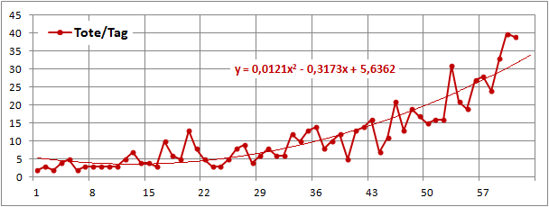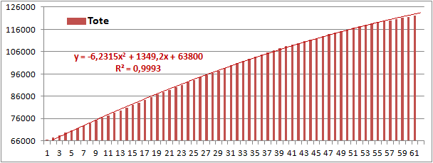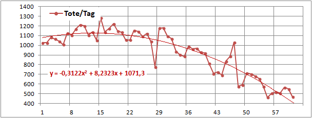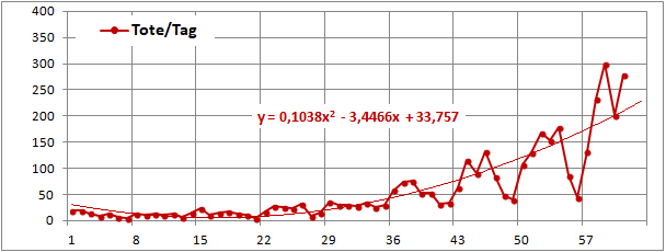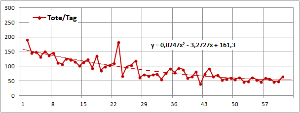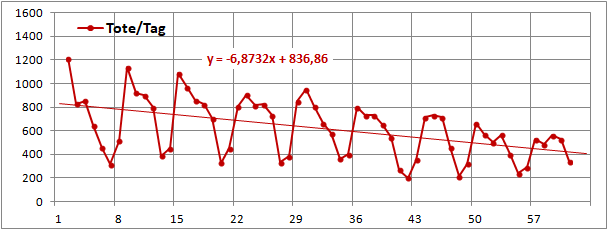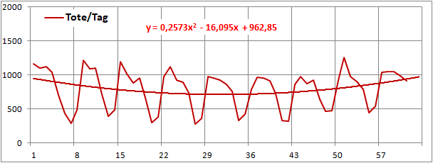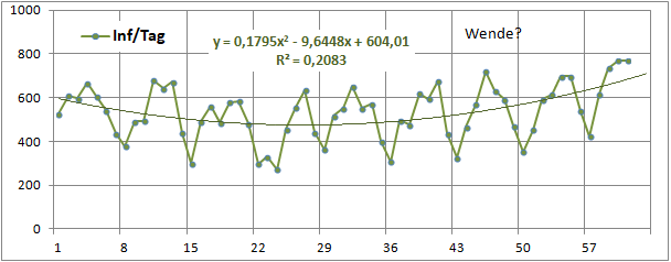 Tagesrate vielleicht wieder ansteigend, wenige Todesfälle, eventuell wieder aufsteigend!