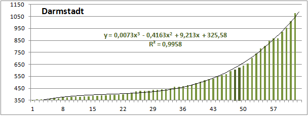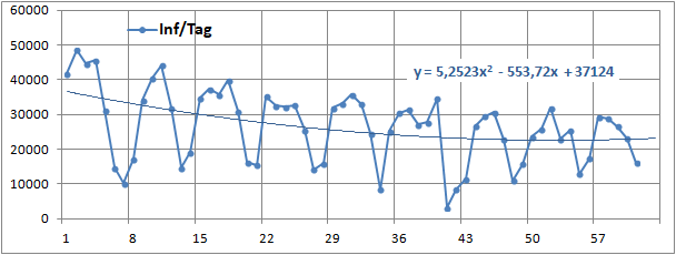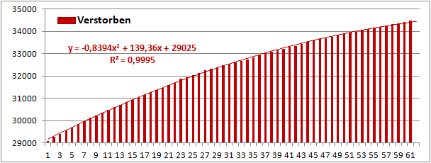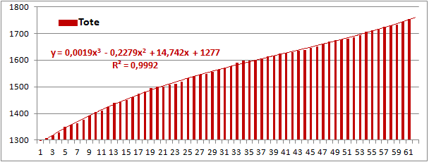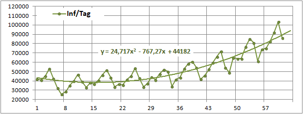 Wenn die Tageswerte linear zunehmen, wachsen die Gesamtzahlen quadratisch.