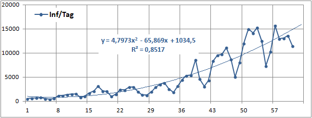 Seit Juni allerdings steigen die Zahlen quadratisch.