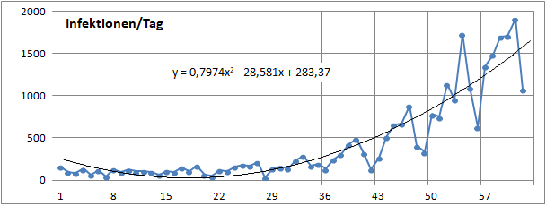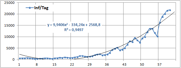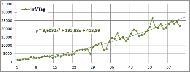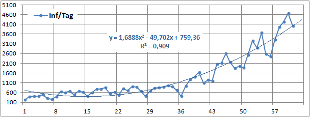 ergibt ein Polynom 4. Ordnung beim Wachstum der Gesamtinfektionen, das