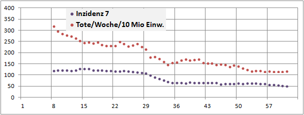 Neu: "Inzidenz" der Sterbefälle (pro Woche, pro 10 Mio Einwohner).