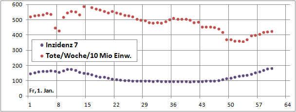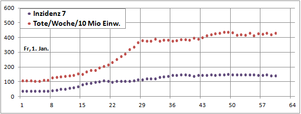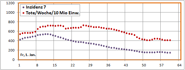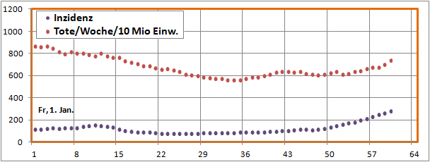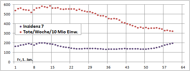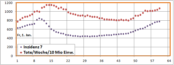 Merkwürdig die Senke der Sterbeinzidenz zwischen 24. Dez. und