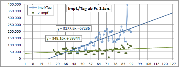 Damit am 1. September 50 Mio 1x geimpft sind, müssten wir 290 T pro Tag (2 Mio/Woche) impfen!