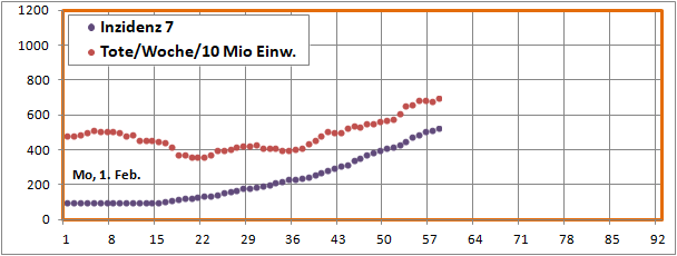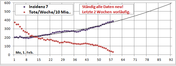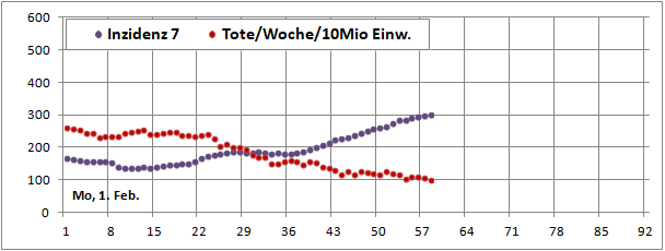 Neuinfektionen über 70% B.1.1.7 ("britische" Mutation), ansteigend.