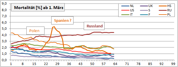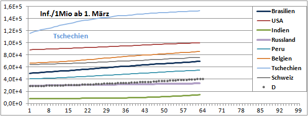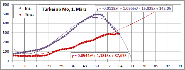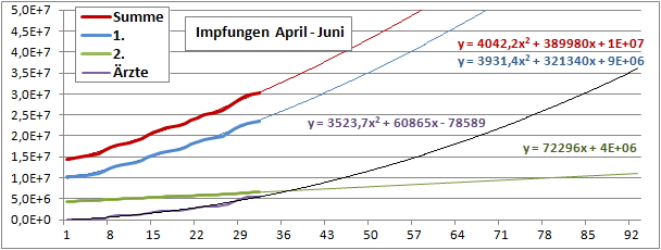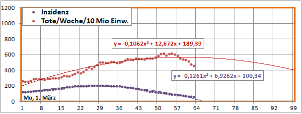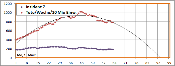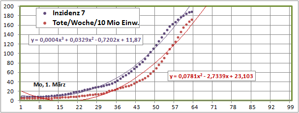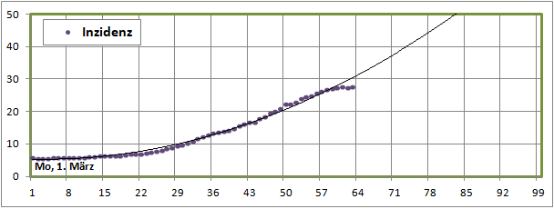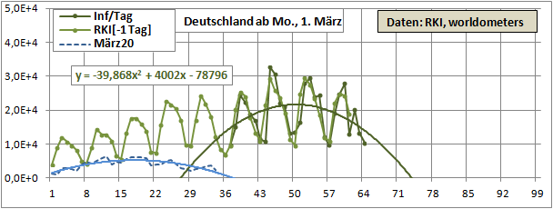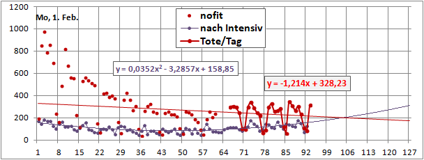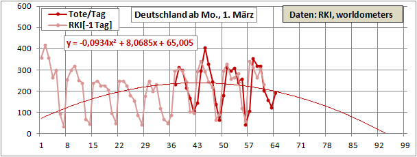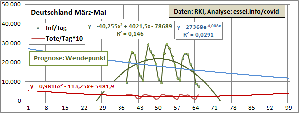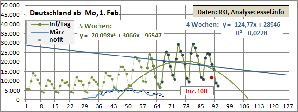 Linearer und exponentieller 4-Wochenfit fallen erstmals: -125/Tag (gestern +60)!