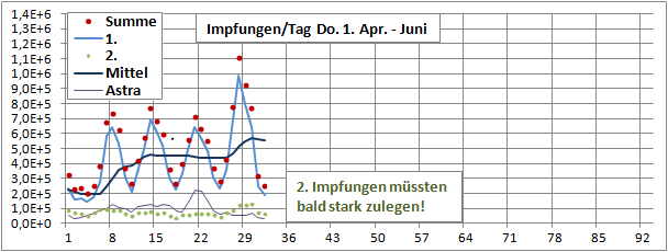 1. und 2. Impfungen 30. April - 2. Mai (nachmittag), in Tausend