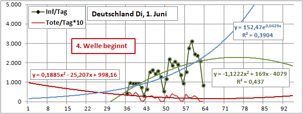 - | Akut | Inf/Tag | Fitkurve | Tote/Tag | Fitkurve |
