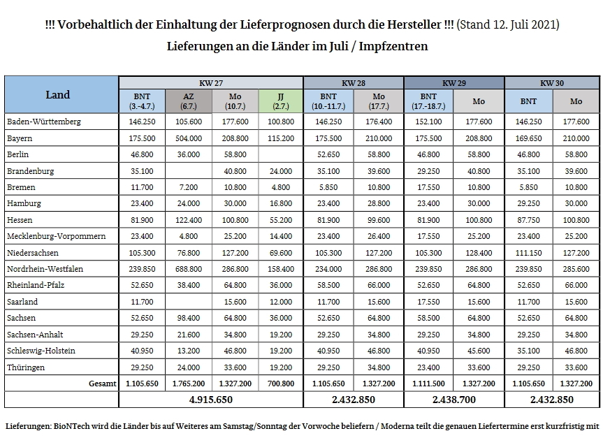 Menge für Impfzentren: Impfplan Juni