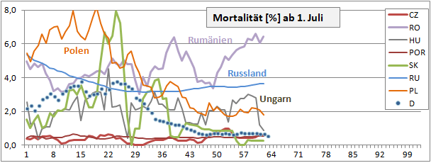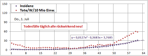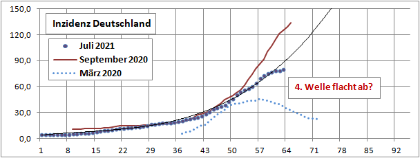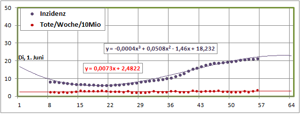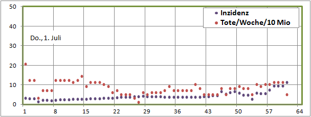 Inzidenz fiel 66 Tage von 177 auf 5, steigt seit 54 Tagen stetig auf 78,6. Mortalität stabil!
