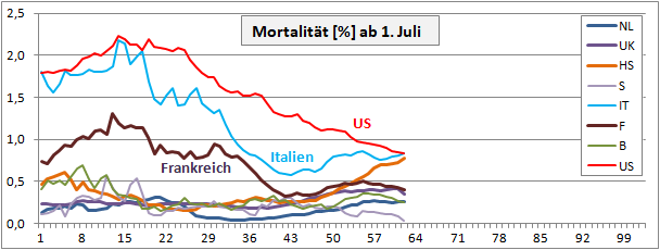 Sterbeinzidenz 21 (+2), Mortalität 0,7% (-0,0)