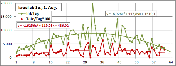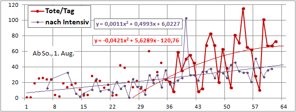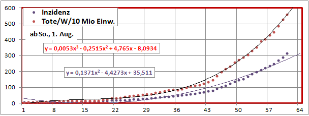 - | Akut | Inf/Tag | Fitkurve | Tote/Tag | Fitkurve |