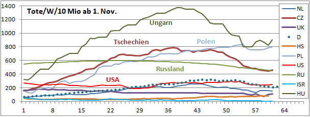Inzidenz von 490 (Maximum) auf jetzt 236! Sterbeinzidenz 220.