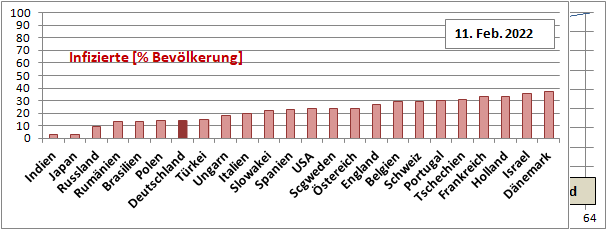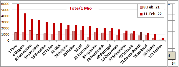 Welt: 440 Mio infiziert (1,5 Mio/Tag, nimmt ab), 6 Mio tot (8T/Tag, nimmt ab).