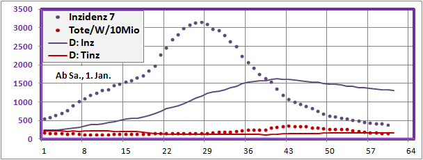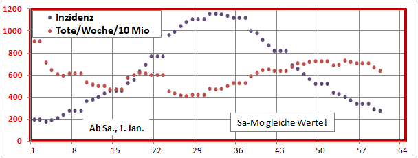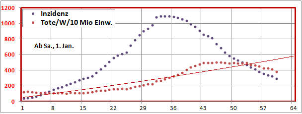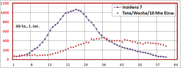 Sterbeinzidenzen (Tote/Woche/10Mio)