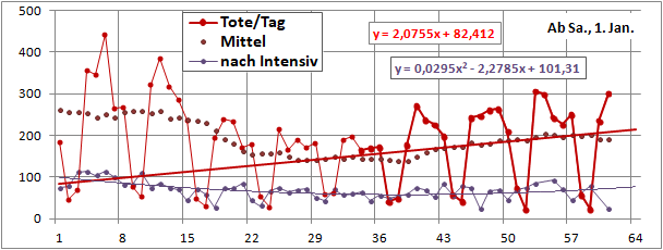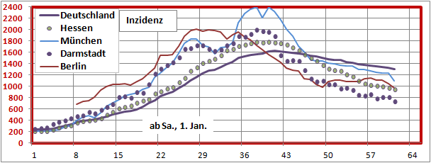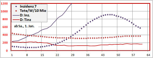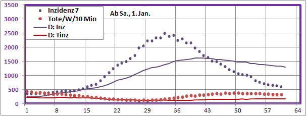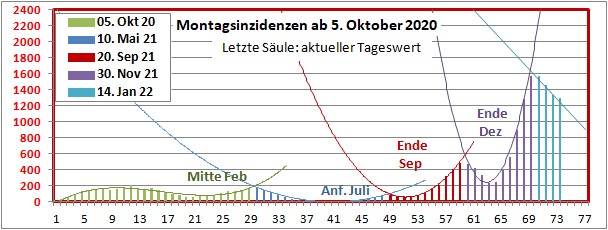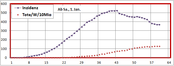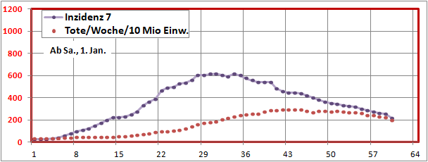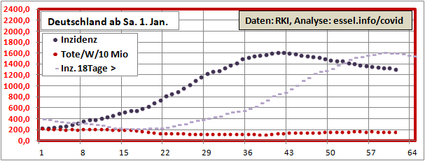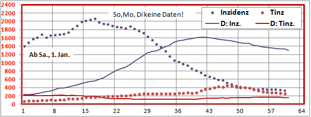letztes Max=490, Min=220, Max=1.600, jetzt 1.300 (-30) Sterbeinzidenz 161 (-0).
