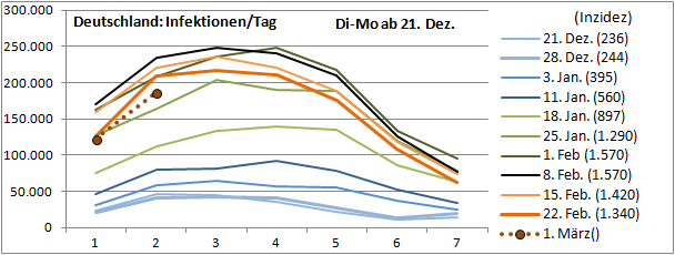 DA: Mo, 22.2. 80 statt 0 Neuinfektionen eingesetzt, Di 164
