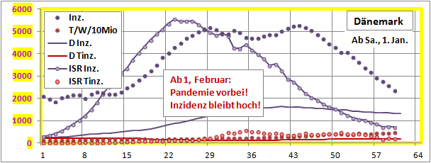 Dänemark 4.1.2022: 0,8Mio Fälle bei 108Mio Tests (0,8%)