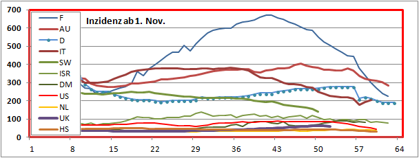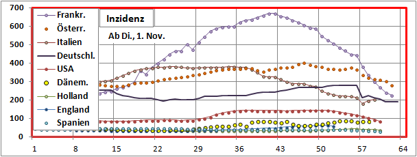 Inzidenzen ausgewählte Länder