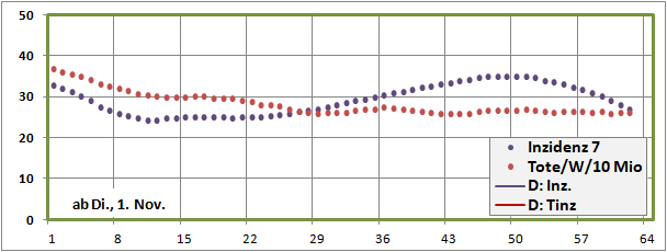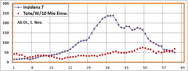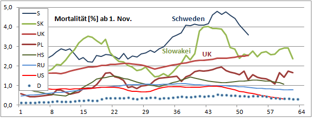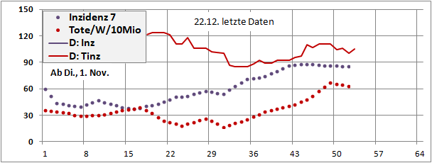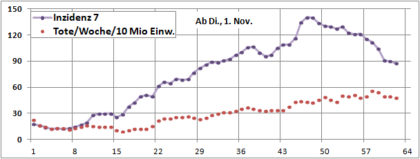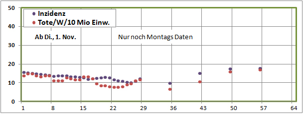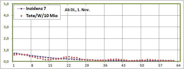 Sterbeinzidenzen (Tote/Woche/10Mio)