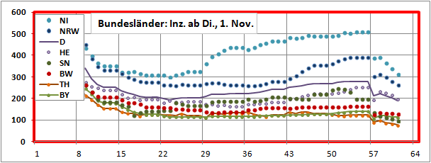 (RKI berechnet alle etwas zu niedrig. Richtige Werte erst eine Woche später: