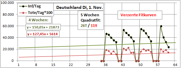Linearer 4-Wochenfit steigt: +150/Tag (zuletzt +200), Mittelwert flach: 23 T (-1)!