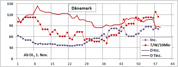 Dänemark 4.1.2022: 0,8Mio Fälle bei 108Mio Tests (0,8%)