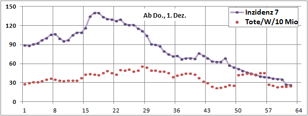 Sterbeinzidenzen (Tote/Woche/10Mio)