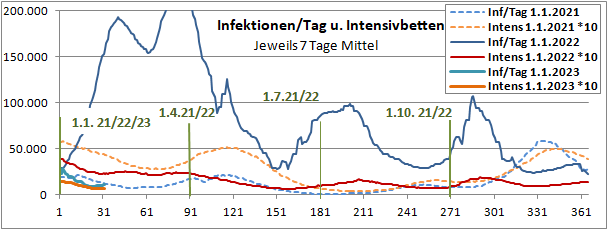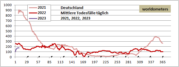 Welt: 670 Mio infiziert (0,3 Mio/Tag, stetig), 7 Mio tot (1,5 T/Tag, stetig).