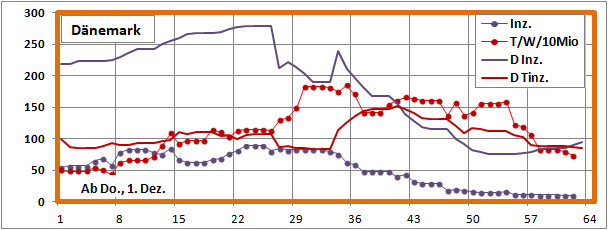 Dänemark 4.1.2022: 0,8Mio Fälle bei 108Mio Tests (0,8%)