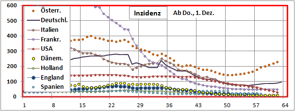 Inzidenzen ausgewählte Länder
