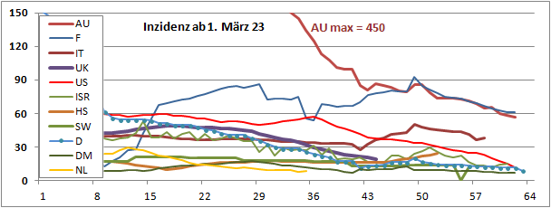 Ab Mittwoch, 1. März. 2023, Stand Samstag, 29. April bis Dienstag