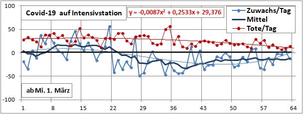 Letztes Min=80, Max=150, jetzt 12 (-0), Sterbeinzidenz 61 (-2), Mortalität 5%.