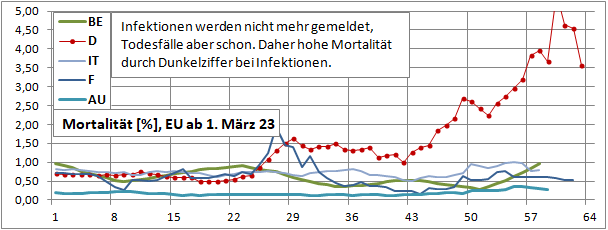 Durch die hohe Dunkelziffer bei Infektionen (keine Meldepflicht) erhöhte Mortalität.