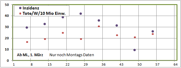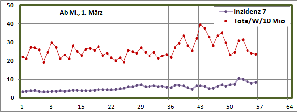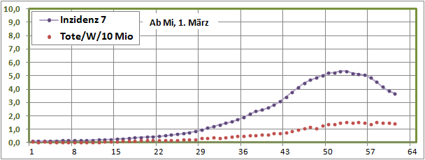 Sterbeinzidenzen (Tote/Woche/10Mio)
