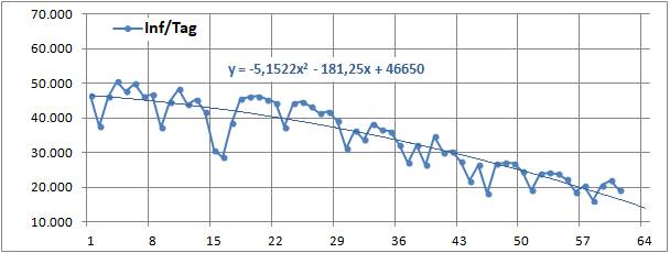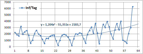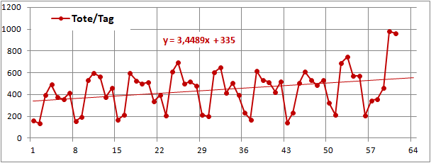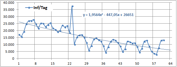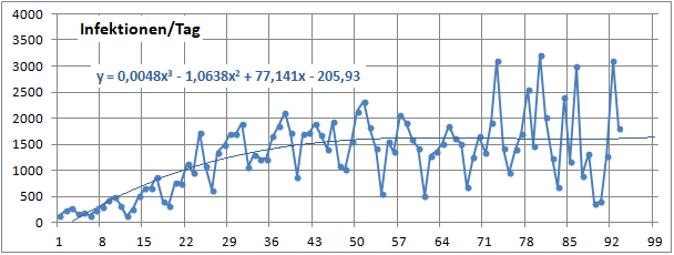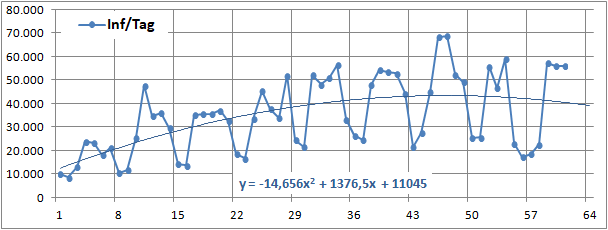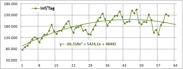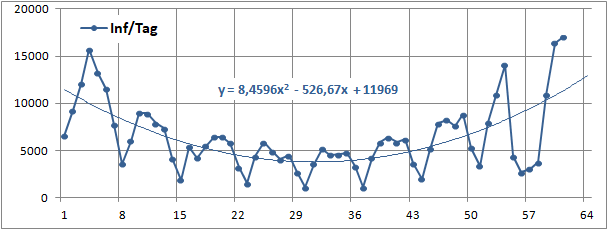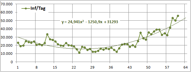 Seit Juni allerdings steigen die Gesamtzahlen quadratisch.