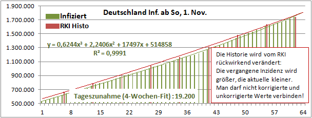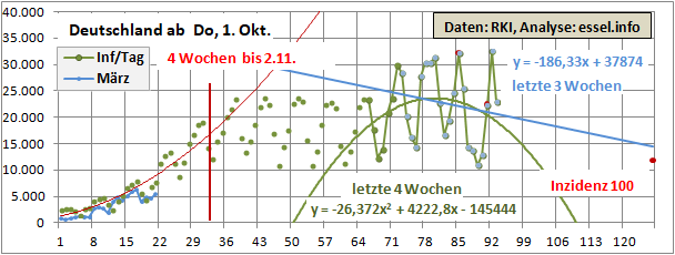 Zitat RKI: "Dieser 4-Tage-Wert bildet das Infektionsgeschehen vor etwa einer bis zwei Wochen ab."