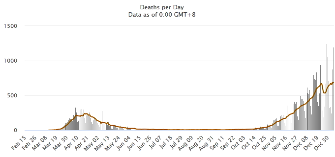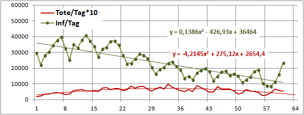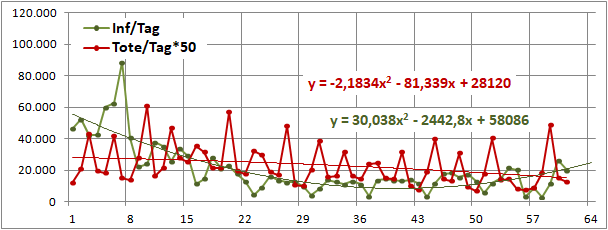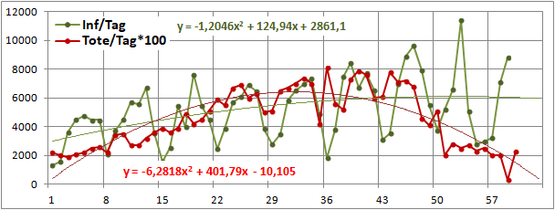 Tägliche Neuinfektionen und Sterbefälle Deutschland.