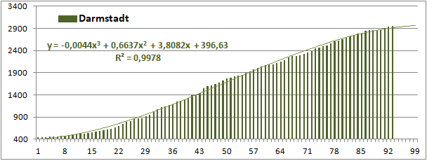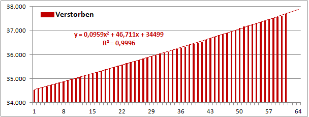 Wenn die Tageswerte quadratisch zunehmen, wachsen die Gesamtzahlen mit [s*x+q*x