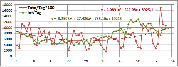 Gesamt Tote 2,3% (D: 1,6%) der Infizierten.