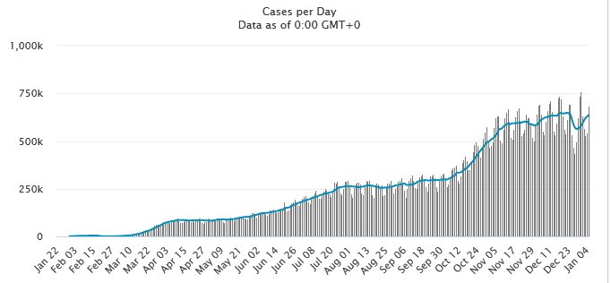 Tägliche Neuinfektionen und Todesfälle weltweit.