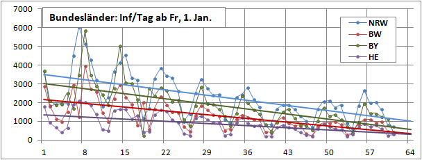 Zitat RKI: "Dieser 4-Tage-Wert bildet das Infektionsgeschehen vor etwa einer bis zwei Wochen ab."