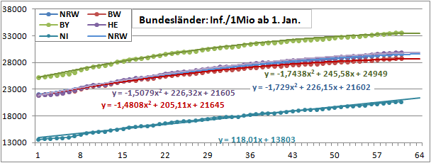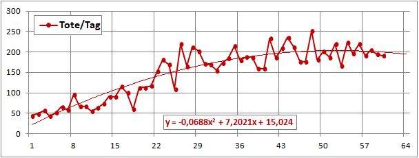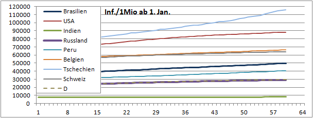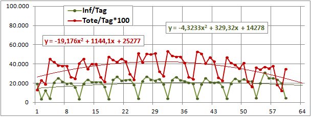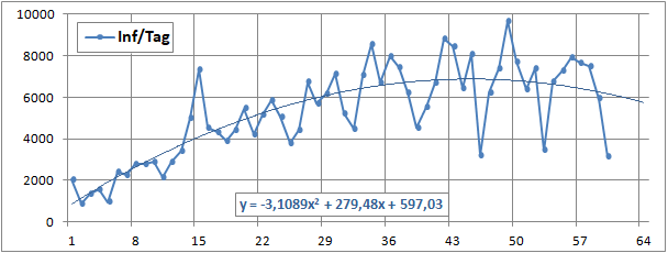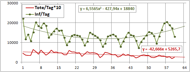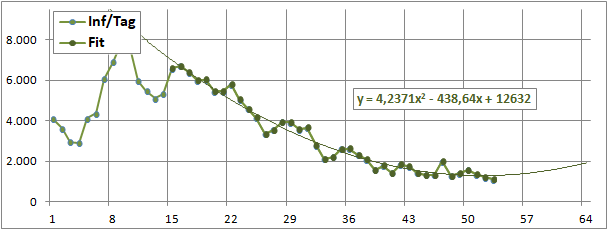 Seit Juni allerdings steigen die Gesamtzahlen quadratisch.