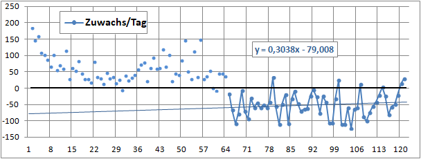 s bezeichnet die Steigung, also tägliche Zunahme,